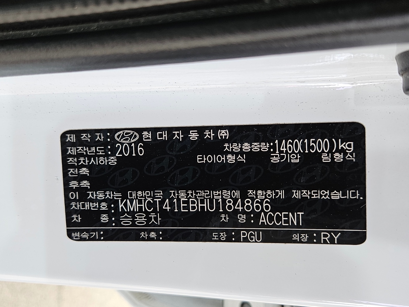 Accent / 184866 / 2017 / Automatic / Gasoline / SEDAN / 186,251 km / 1,591 cc /